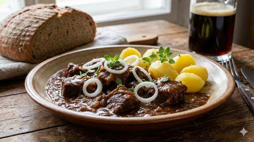 Kouzlo dokonalého guláše spočívá ve třech věcech: správný výběr masa (kližka, ne zadní!), tmavý cibulový základ a čas. Kližka je prorostlá kolagenem, který se při dlouhém dušení rozpustí, maso bude měkké jako dort a omáčka získá krásnou texturu i bez lepku.
